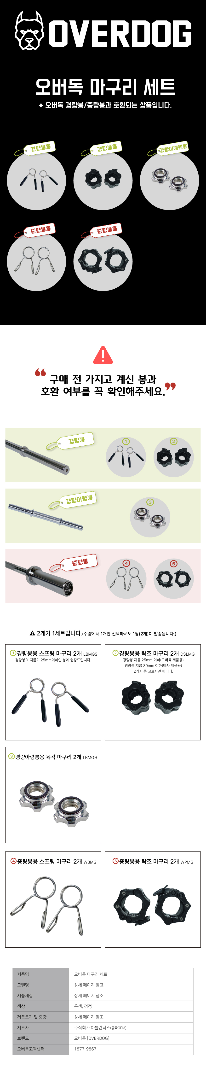 오버독 종류별 마구리 세트
